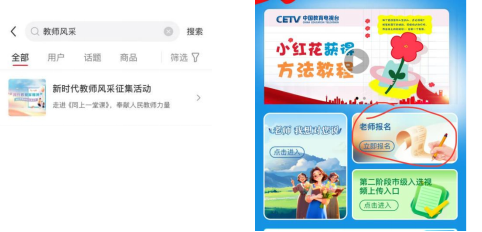 1.打开小红书,直接搜索关键词“教师风采”、“中国教育电视台”或“同上一堂课”,进入专题页面。