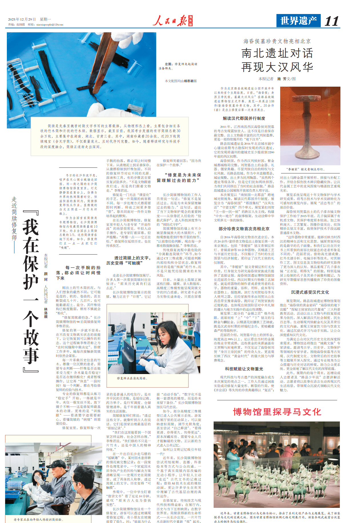 在长沙简牍博物馆,修复室里年轻人与老专家“并肩作战”的场景很常见。年轻人动手操作,老专家盯着屏幕,轻声提醒:“再慢一点……它正在松。”修复师在延续历史,也在传承技艺。
